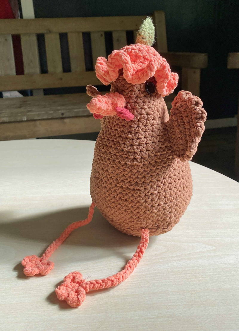 This story begins outside the archive, from before I even knew the Archive Committee existed. I had heard from my lovely boyfriend Alex, your current praeses, sometime last year that there was once a mascot of LPR named Pouleke, named after ‘ma pouleke’ from Et Viens, our association's anthem. I thought this was fantastic, considering the chicken is one of my favourite animals and mascots are super cute. I became increasingly enthusiastic about court dancing at that time and had decided to join the association in September. Since the same lovely boyfriend had told me that I did need to do or make something for my inauguration, I decided to crochet a new Pouleke. Having no more information besides 'It's a mascot and it bears the name Pouleke', I started making a chicken over the summer.