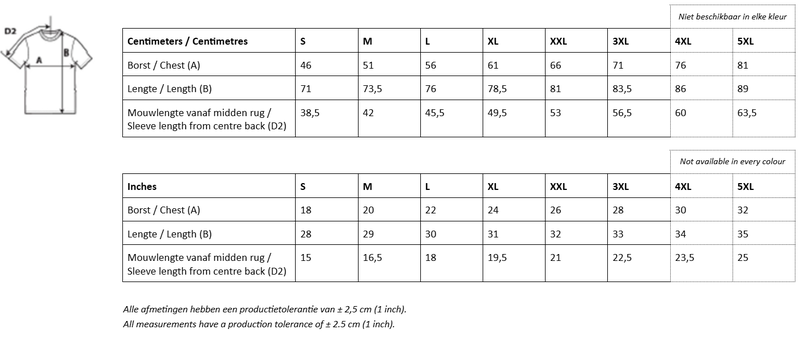 - Model: unisex met korte mouwen en ronde hals